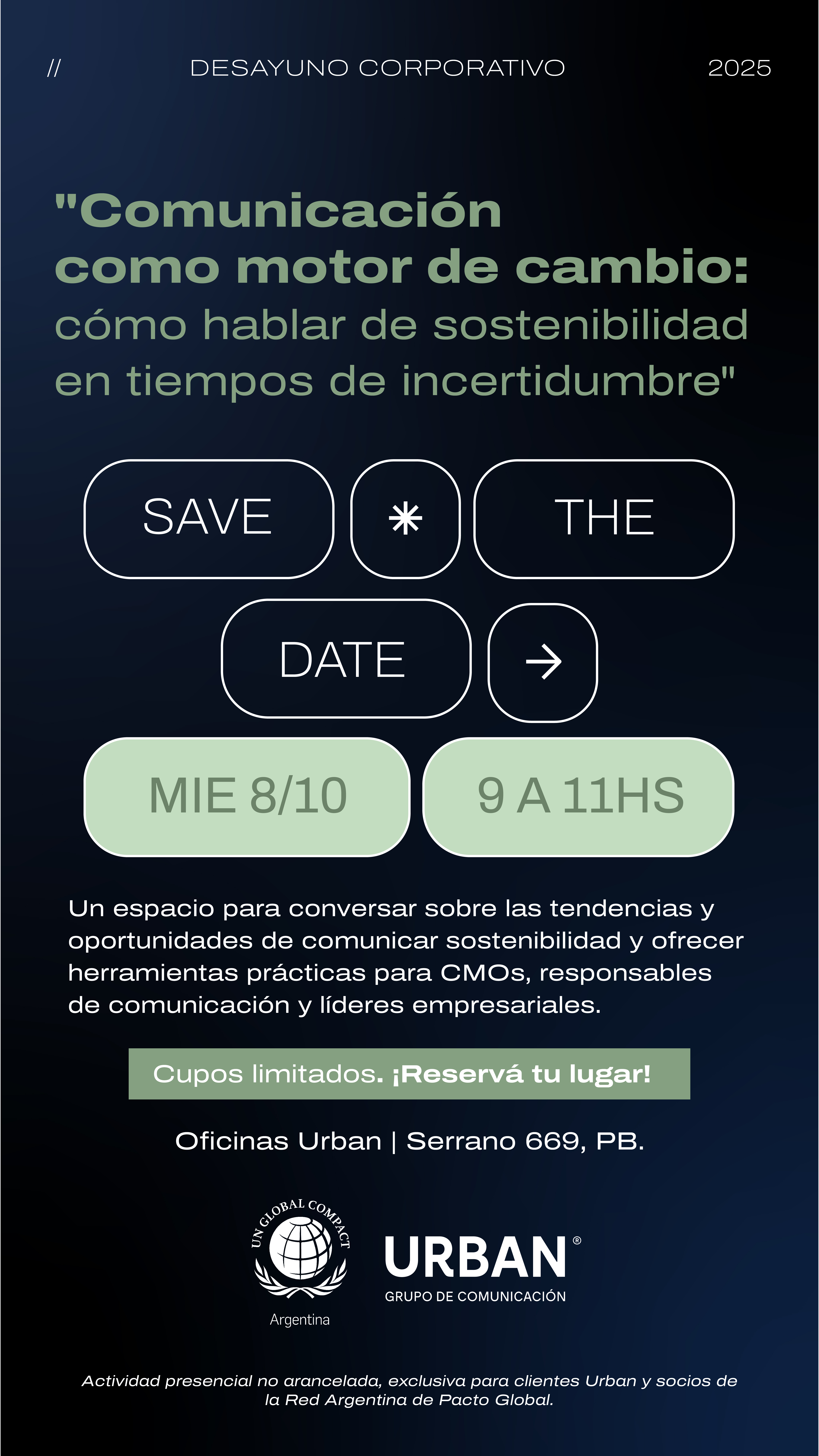 Presentaremos un marco de acción concreto para que los CMOs integren la sostenibilidad al corazón de sus estrategias de negocio y desde Urban presentarán su informe de tendencias en comunicación de sostenibilidad y el análisis de los desafíos y oportunidades para construir una comunicación relevante y de impacto.
